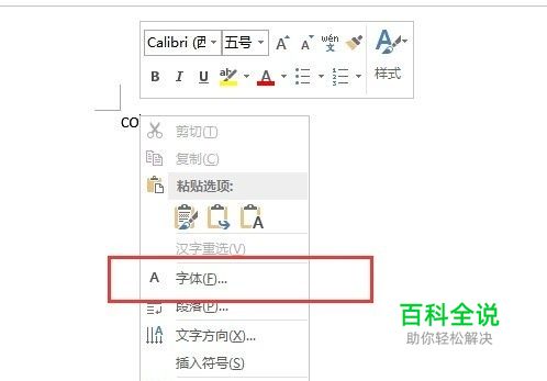 接下来,选中“下标数字”,击右键,选择"字体"菜单。