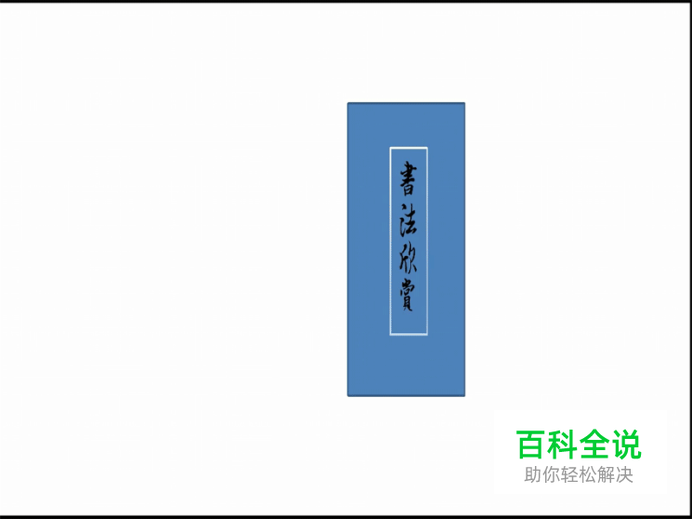 选择第一个幻灯片中的右边的矩形,执行插入-文本框命令,从中选择竖列文本框,输入文字内容为“书法欣赏”,设置字体为王羲之书法字体,字号为40。