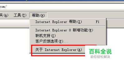2. 打开显示关于IE的信息,可以查看当前IE浏览器的版本号 如果是IE7之前的版本,请升级IE浏览器更新IE。