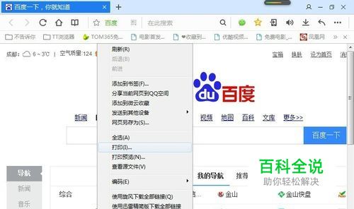 打开一个网页,右键打开菜单,点击打印。