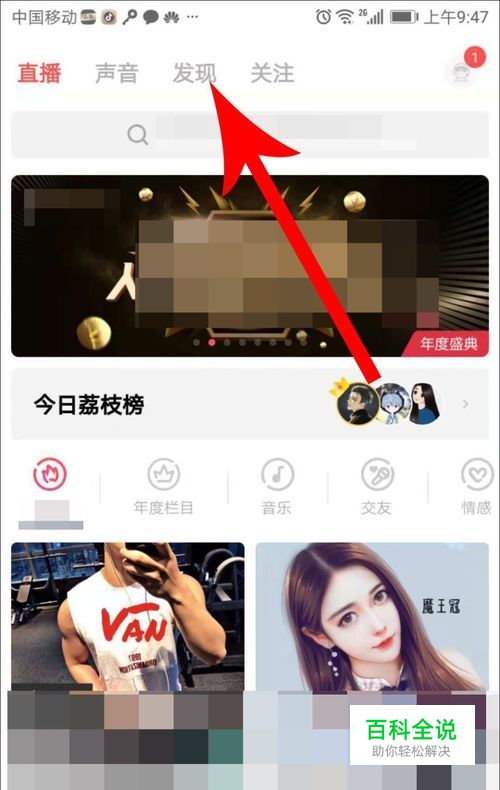 手机上打开荔枝app,然后点击界面顶部的“发现”