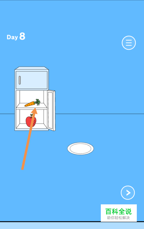 第八关点击冰箱,打开冰箱后在胡萝卜和苹果中选择一个,然后点击OK。