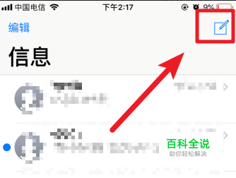 我们打开自己的苹果手机,选择信息应用进入后,然后点击右上方的编辑图标进入。