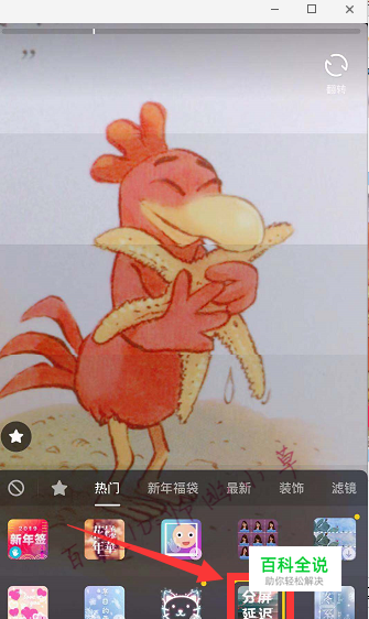 选择“分屏延迟”道具,目前在热门里有。