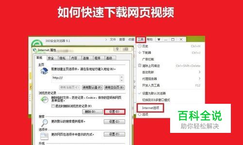 点击【Internet 选项】,进入【浏览历史记录】,找到 【设置】选项。