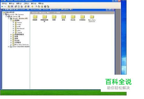 1、第一步:打开SQL Server数据库,依次点击Microsoft SQL Servers - SQL Servers组-数据库。