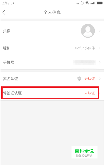 完成实名认证后点击返回到个人信息界面,找到驾驶证认证并点击打开。