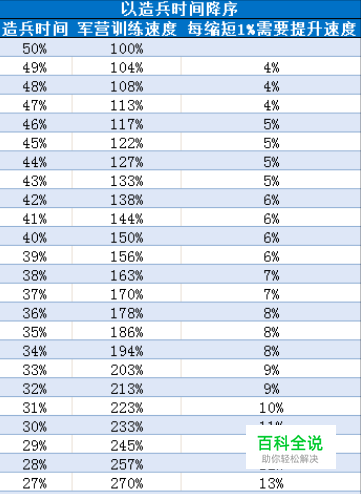 以200%训练速度为例 时间(一次造兵量)从4h提升到12h,每钻可造兵从1.95提升到2.54 从12h提升到24h,每钻可造兵从2.54,提升到2.88 从24h提升到48h,从2.88提升到2.93。。93。。3 所以适量升级军营,保持暴兵时一次时间约为24h即可