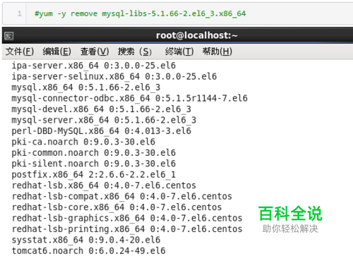 2、将所有与mysql相关的东西删除#yum -y remove mysql-libs-5.1.66-2.el6_3.x86_64