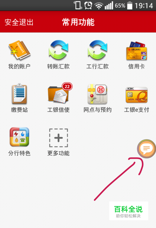 首先需要安装好工商银行手机银行软件,注册并登录成功后,可以看主界面右则有一个浮动的气泡图标。