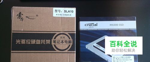 准备好固态硬盘和硬盘托架。我买的是英睿达的mx200 250g的,托架也是网购的,总共花了630元(有点肉疼)。据说固态的硬盘容量大点的速度更快点。另外闪存一般都选mlc的。