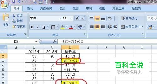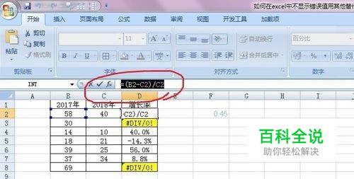 将D2的单元格内的公式更新为=IFERROR((B2-C2)/C2,""),敲击回车