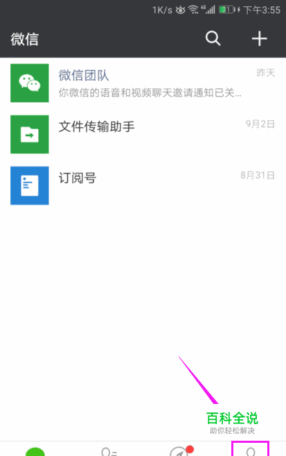 打开手机,打开微信,来到了微信首页,我们点击右下方的“我”,如图。