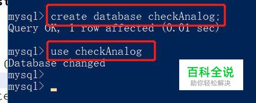 接下来创建数据库 checkAnalog,并使用该数据库。