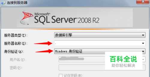 首先以Windows身份验证登录,服务器名称如果是登录到本地可以以“.”登录,点击连接。