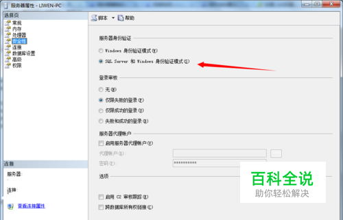 还要设置数据库启动两种身份验证,在数据库上右键,点击属性,然后找到“安全性”选项卡,选择SQL Server 和Windows身份验证模式确定即可用登录名登录。