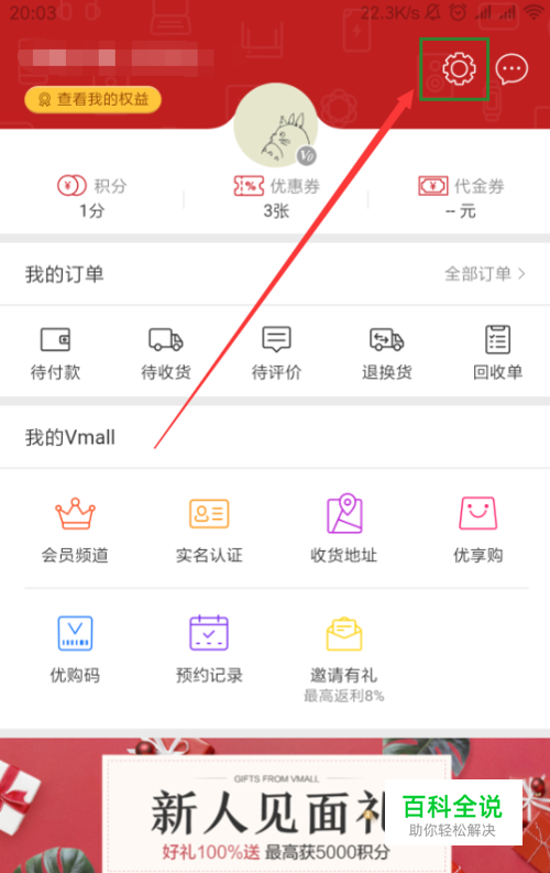打开官方商城APP,切换到“我的”,找到齿轮状按钮。