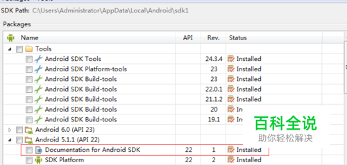 如果没有下载,如图所示~~选中Documentation for Android SDK~~~