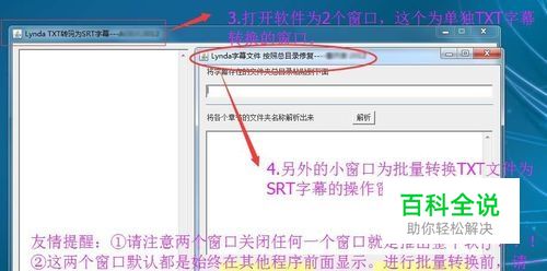运行Lynda2SRT软件会出现2个窗口。大窗口为字幕转换窗口,小窗口为批量操作窗口。 提醒:①2个窗口关闭任何一个窗口都会退出整个程序,请注意不要误操作。②进行某个窗口的操作时,建议最小化另外的窗口。尤其在进行批量转换操作时,确保桌面中心有足够位置。