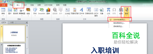 首先准备好要插入的音乐,打开PPT。插入——音频