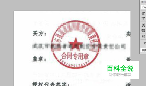 首先启动Photoshop cs5,打开一份带公章的合同。
