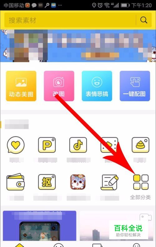 手机上打开biu神器app后,在首页位置点击下图箭头所指的“所有分类”按钮