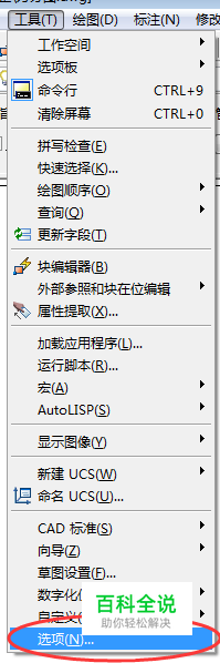 打开CAD,打开菜单栏工具选项