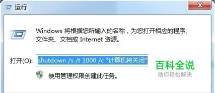 代码: shutdown /s /t 1000 运行效果如下!