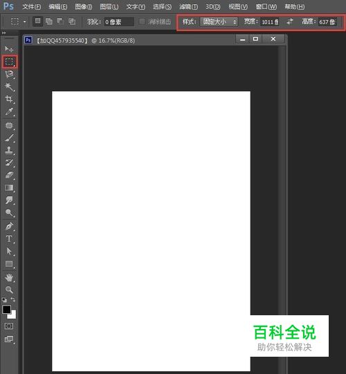 点击矩形选择框,样式选择固定大小,宽度1011像素,高度637像素