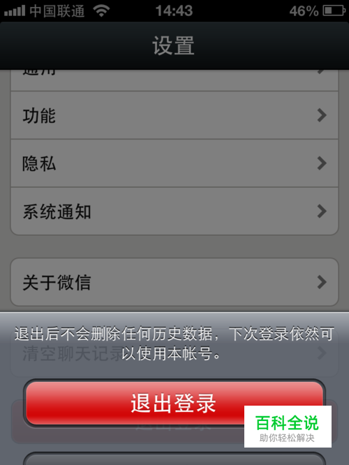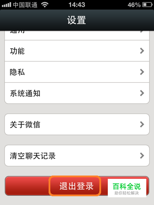打开微信以后,点击底部的“ 设置”,然后用手指向上滑动并点击“ 退出登录”,如图所示
