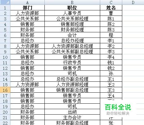 公司部门、职位、员工姓名详情如图所示:
