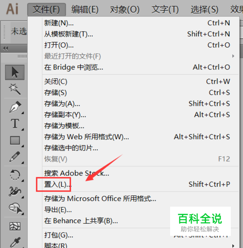 在该界面内找到文件菜单里的置入选项,如图所示: