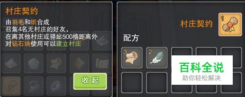 准备如下道具 钻石块一个(可通过钻石*9合成获得)、村庄契约9(可通过纸*3+羽毛*2合成获得)
