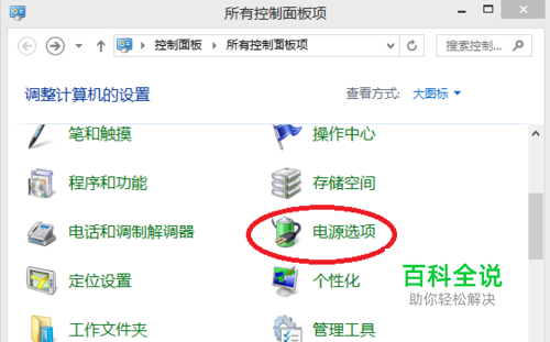 进入控制面板,找到并打开”电源选项“: