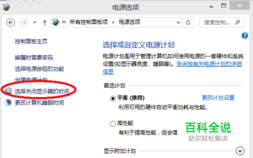 在界面的左边侧栏,找到并打开”选择关闭显示的时间“: