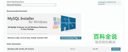 第一步:到Mysql官网下载。 从[https://dev.mysql.com/downloads/mysql/](https://dev.mysql.com/downloads/mysql/)找到需要的win10 64位mysql