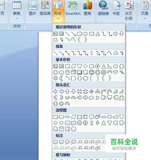 点击形状图标的下拉箭头,可以看到下面有很多的形状样式,可以满足我们的各种需求