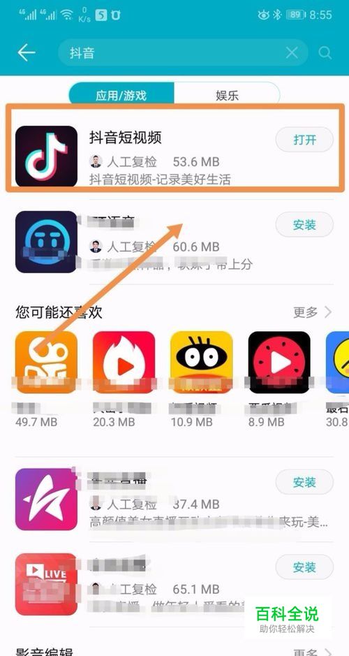 我们打开手机的应用商店,搜索“抖音”,下载并安装该软件。
