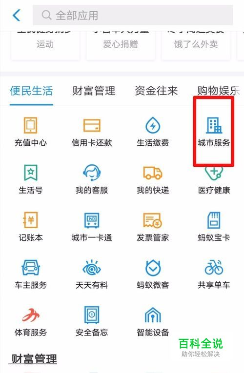 紧接着,需要进入到软件功能的页面找到【城市服务】,并点击打开。如图示