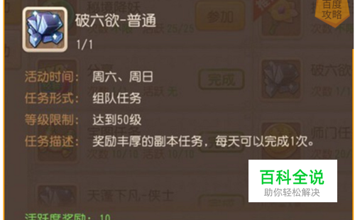 参与条件:≥50级,≥3人组队,找百晓仙子进入,地图为两界山