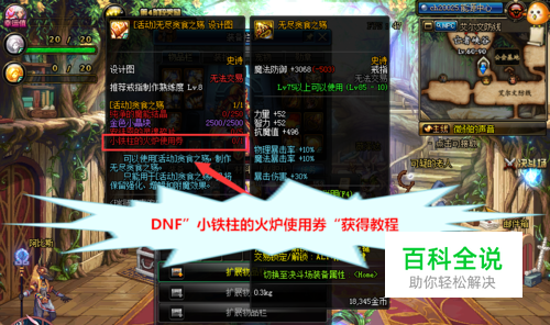 地下城与勇士游戏攻略。DNF装备制作图需要的“小铁柱的火炉使用券”道具如何购买获得?