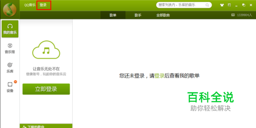 打开QQ音乐,点击“登录” 不登陆是不能删除音乐的,也不可以下载音乐