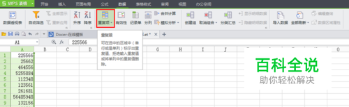 我们在wps表格中的单列录入大量数据时,可能会因为疏忽而录入了重复的数据这时要在大量的数据中查找就会很费时间,以下步骤轻松完成对单列数据的重复项去除。