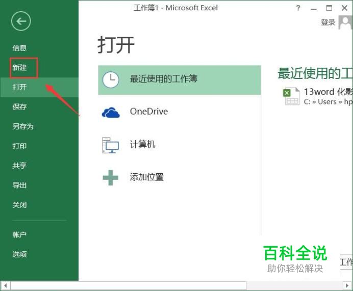 打开excel之后点击文件菜单,在其内我们找到新建选项,如图所示: