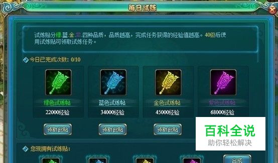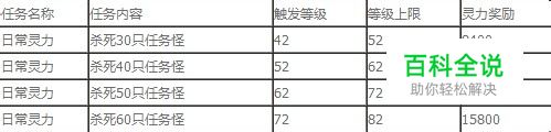 一、灵力任务玩家每天可完成10个灵力任务,每个任务的基础灵力奖励均相同 以下为4个等级阶段玩家完成灵力任务的基础奖励以及任务内容完成灵力任务后可通过下图所示的界面刷新任务奖励,刷新成功后分别可获得150%、200%与300%的基础灵力奖励 每完成一次灵力任务可免费刷新一次,之后每次刷新会优先消耗一张灵力任务刷新符 刷新符不足则优先消耗绑定元宝,绑定元宝不足则消耗元宝 二、运镖任务玩家每天可完成3个运镖任务,不同品质的镖车奖励也不同 运镖可获得大量经验、银子奖励 国运时间时还可在此基础上获得2倍奖励 三、跑商任务 玩家每天可完成3个跑商任务 接受任务后可获得10000跑商银票,通过跑商获得60000跑商银票即算完成任务通过低买高卖,使用飞行符可快速达成任务条件 四、试炼帖任务玩家每天可完成10个试炼帖,接受任务需消耗一张试炼帖,没有试炼帖则无法获得任务 接受不同品质的试炼任务后获得奖励也不同 五、宗派任务玩家每天可完成5个宗派任务,完成任务后可获得经验,宗派贡献与宗派资金 六、跑环任务根据玩家等级不同,每天可完成不同次数的跑环任务 跑环任务,每日前20环可获得多倍经验奖励,每一环的奖励依次递增