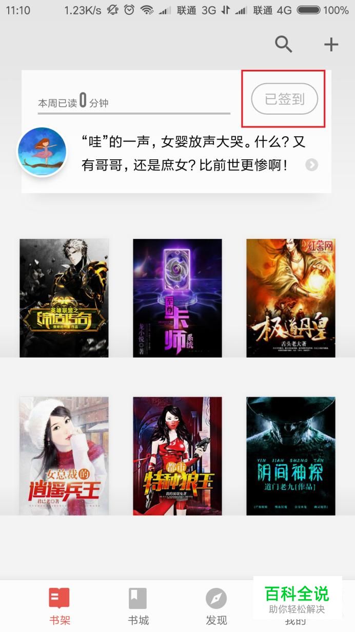首先,打开掌阅应用主页面,点击“书架”菜单选项,点击页面上方的“签到”按钮。