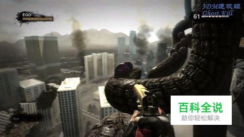 通过爪子后到头了,下面的平台看着很远,觉得是跳不过去,不过还真跳过去了。落地之后捡起地上的枪,干掉飞过来的外星人。杀光外星人后一架飞机会炸段面前的石柱,踩着石柱过去。