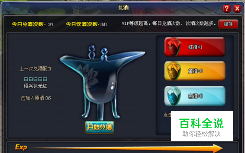 标识,即可开启兑酒界面。在这个界面中玩家可以将不同的原酒调配为一个美酒,饮用美酒可获得大量经验。