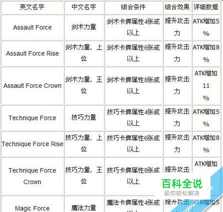 《扩散性百万亚瑟王》游戏中同一牌组中可以同时拥有很多种combo组合,不同的卡牌组合也会产生不一样的效果。当然不同的combo发动的几率也不一样,在战斗之前,系统会先判定发动那些combo,因此即使齐备了条件也不一定会发动。今天的主题是卡牌组合属性组合的介绍,我们来看下下面这个表格了解下吧。从表格我们可以清楚的看出,所有的combo的效果会复试的叠加上去,而且效果都是正对于生命值以及每张卡牌的攻击效果和对手的卡牌效果。如果运用的好,就会产生更好的效果。攻略详情请进入下方链接查看