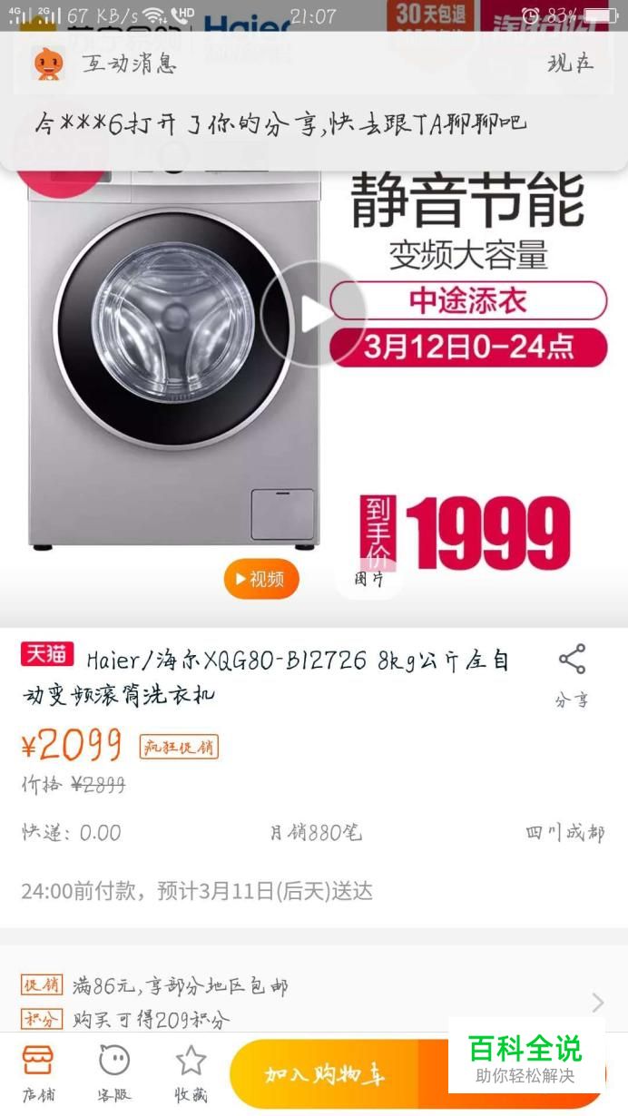 如果好友已经查看了你的分享,你的淘宝里面就会出现相应的提示